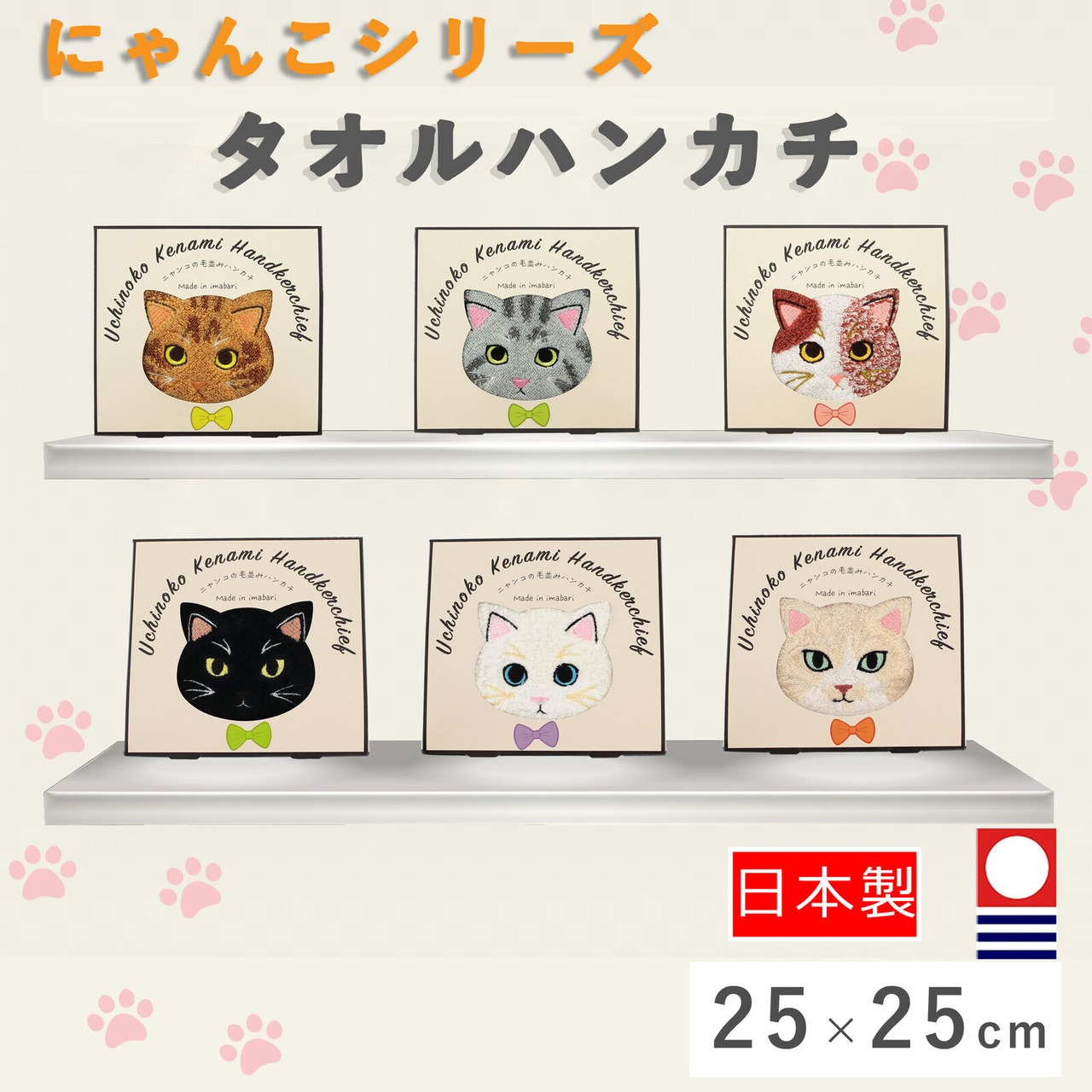 猫の毛並み 今治タオルハンカチが新登場!かわいらしいねこの顔デザインは、日常使いや贈り物にぴったりですので、ぜひお手元にどうぞ!